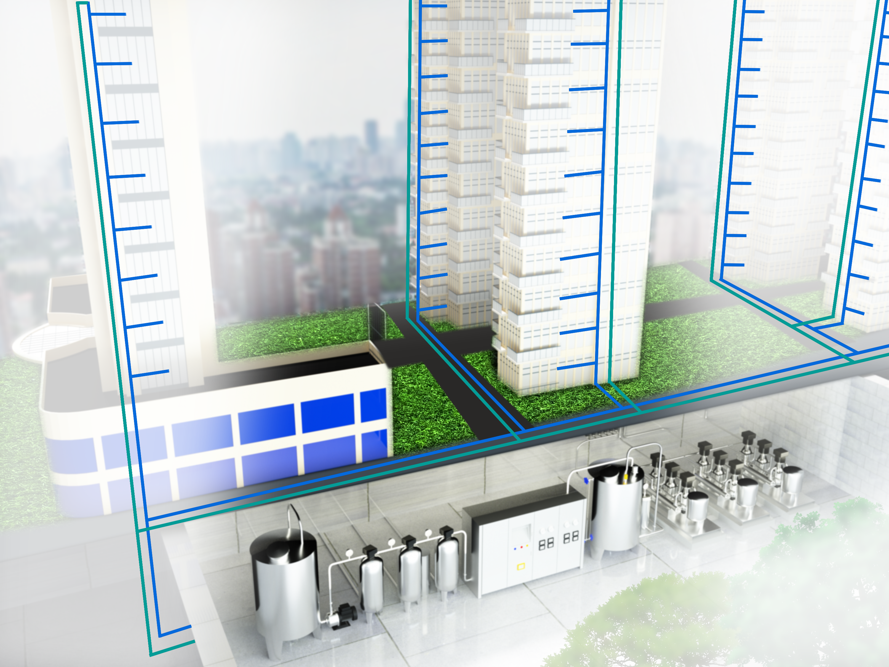 管道直饮水是一个系统,业内一般这样定义它:在特定区域内单独建设中央净水机房,对自来水或其他优质原水进行深度净化处理,去除水中有机物、细菌、病毒、余氯、泥沙、铁锈等杂质,通过独立铺设的食品级循环管网,将净化后的直饮水输送到每一个饮水终端。