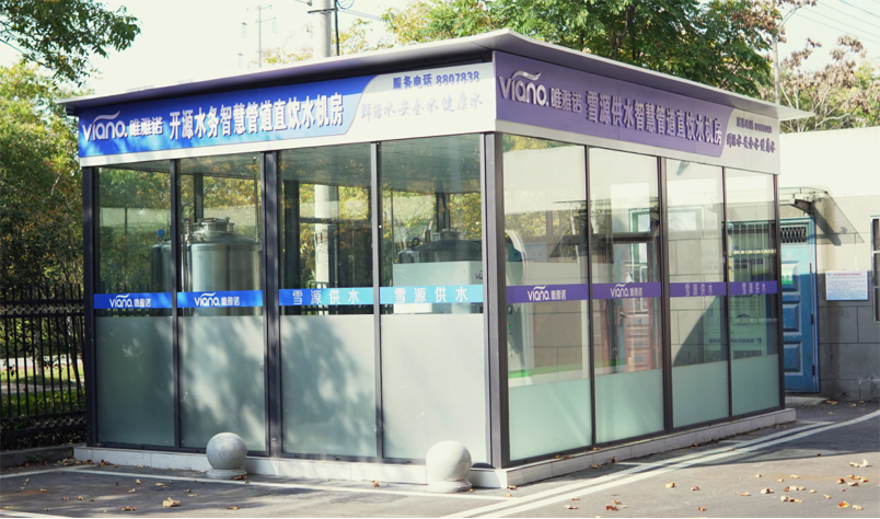 硬件建设筑牢安全根基。项目以技术赋能品质,全方位强化硬件支撑。机房部署人脸识别系统与360°无死角监控,同步配套体验区与应急取水区,实现安全管控与便民服务双提升;主机设备采用“预处理+膜处理+后处理”核心净化工艺,配置两套多参数水质监测仪,确保水质净化精准可控;管网采用同程循环设计与横向分区模式,从技术层面保障水质新鲜、供水稳定;终端设备在标配不锈钢龙头基础上,增设紫外线杀菌龙头,精准满足支管过长用户的安全用水需求。